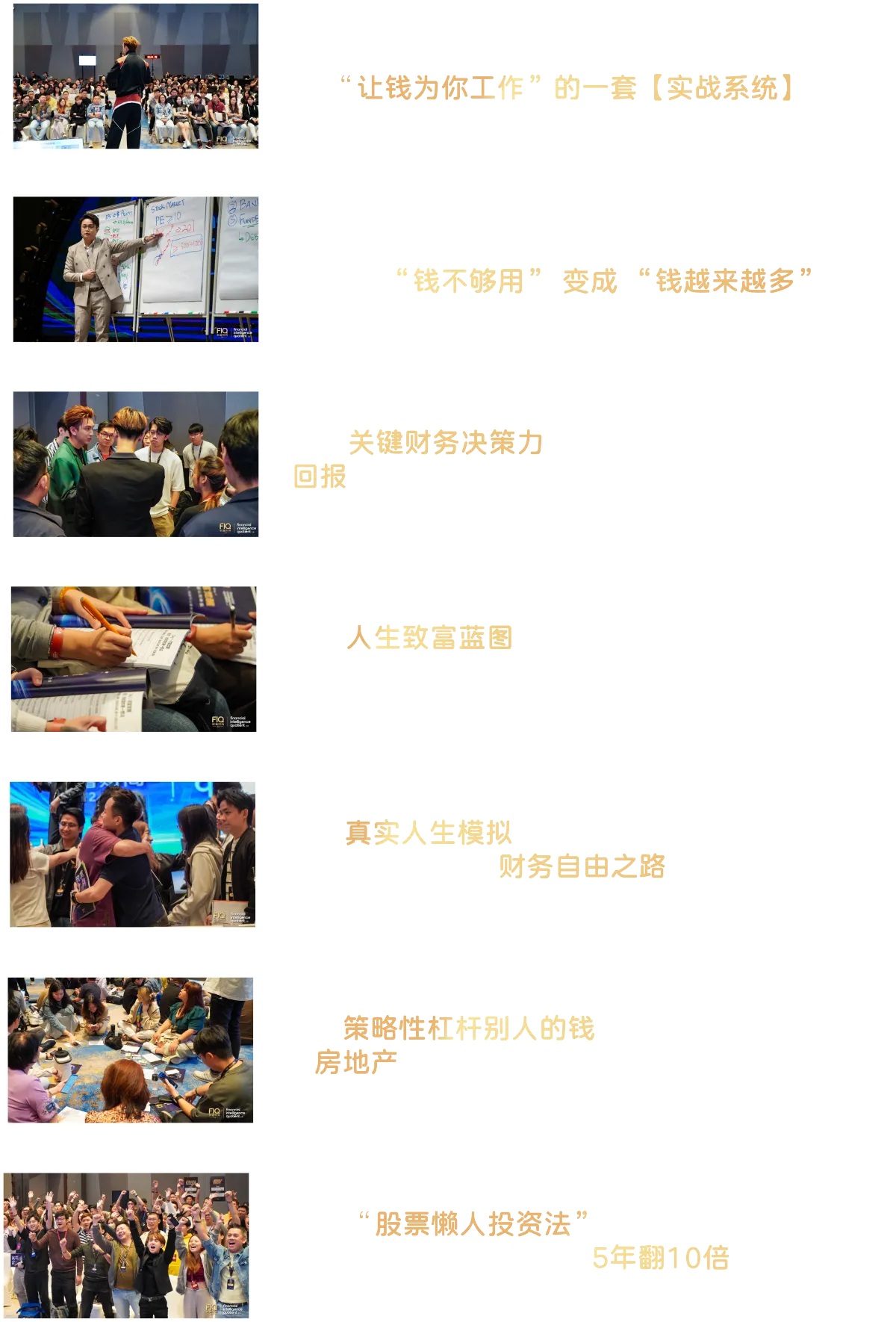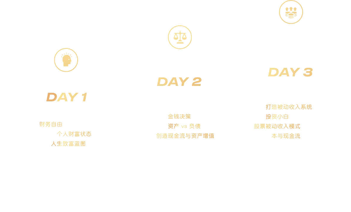 没有年龄限制。课程适合18岁以上、任何想认真面对财务状况、建立被动收入、掌握财务自由的人都能参与。